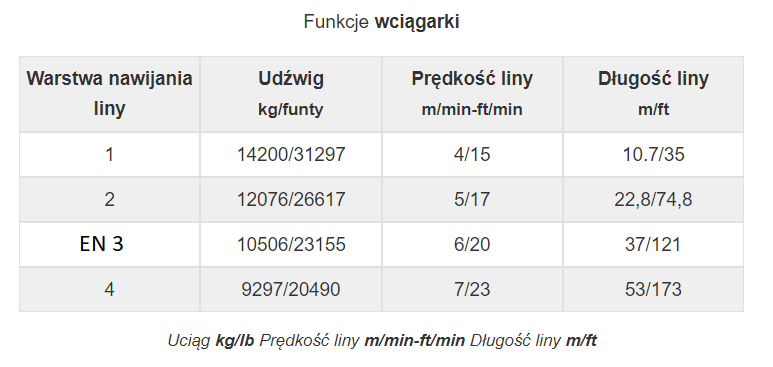 Maks. długość liny dla EN:37 m